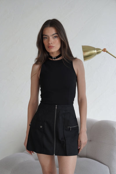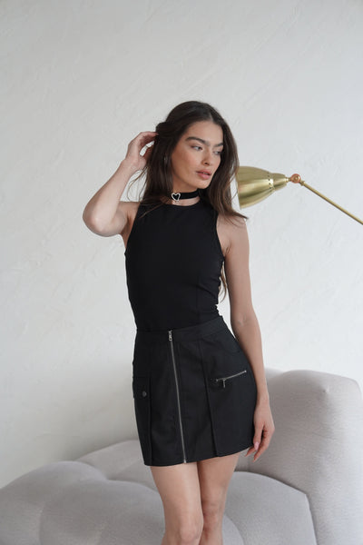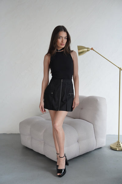 חצאית מיני לנשים בשחור עם כיסים וריץ׳ רץ׳ לאורך החצאית מבית סטיב מאדן