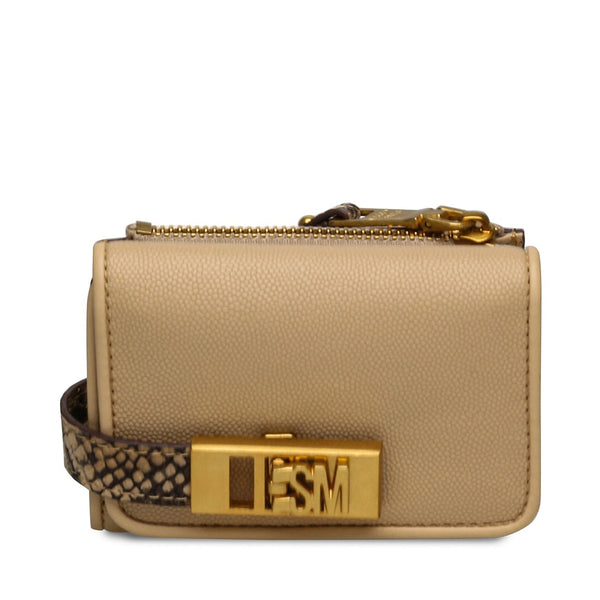 ארנק לנשים בגוון קאמל משולב ברצועה מנוחשת עם אבזם ולוגו זהובים מבית סטיב מאדן