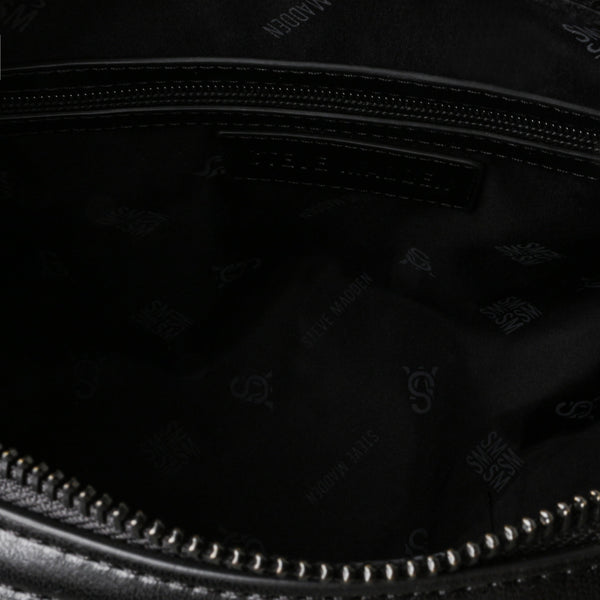 תיק יד לנשים בשחור עם לוגו מושחר לתיק רצועת נשיאה הניתנת להסרה מבית סטיב מאדן