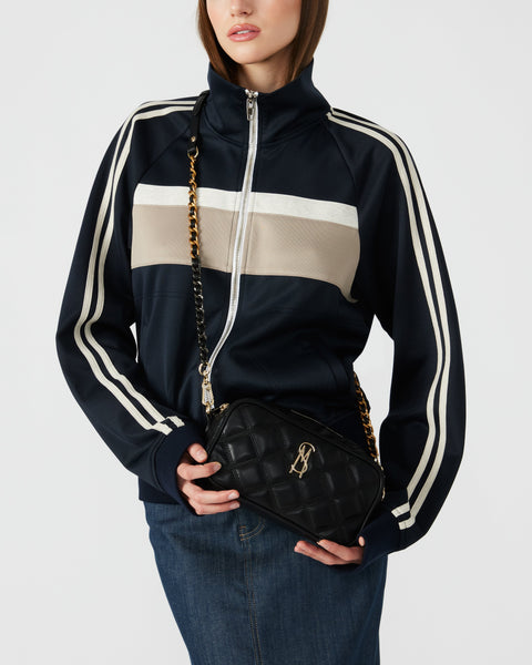 תיק צד לנשים בשחור עם תיפורי קוויליט ואבזם זהוב מבית סטיב מאדן