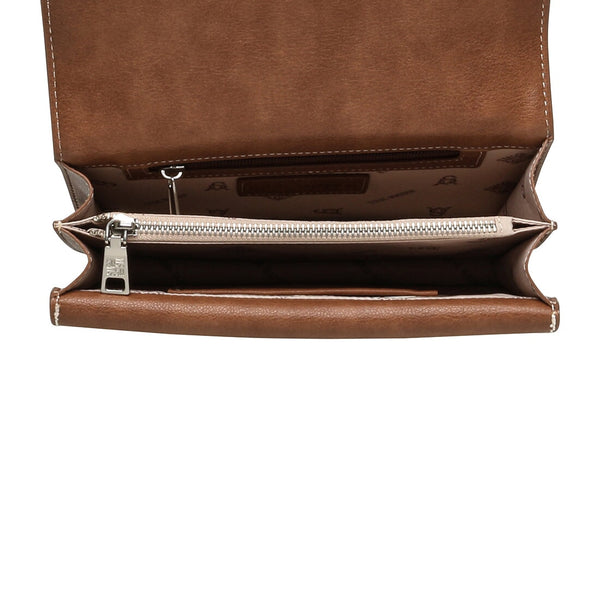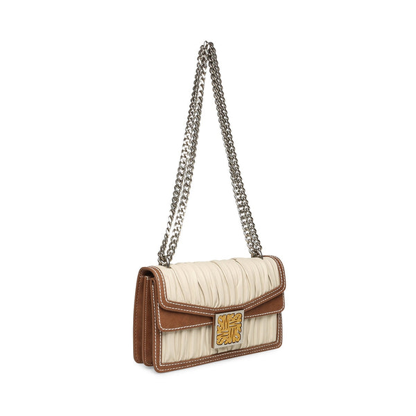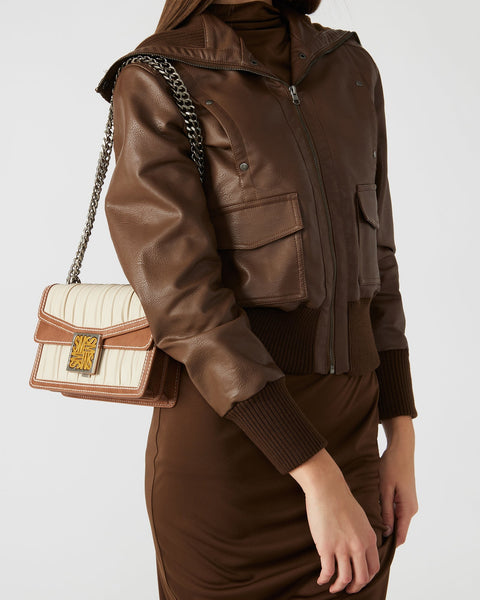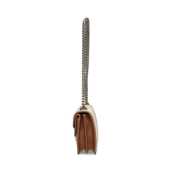 תיק צד לנשים באבן משולב קאמל עם רצועת שרשרת ולגו מתכתי מבית סטיב מאדן