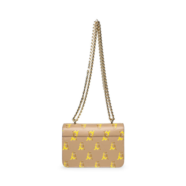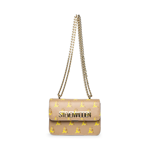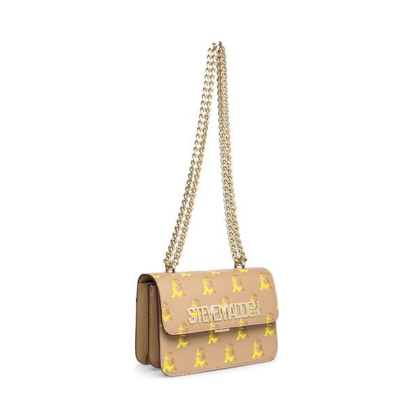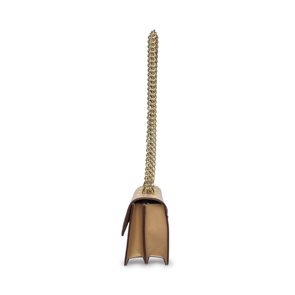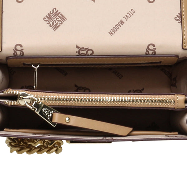תיק צד לנשים בקאמל עם הדפס לוגו ALL OVER ורצועת שרשרת מבית סטיב מאדן