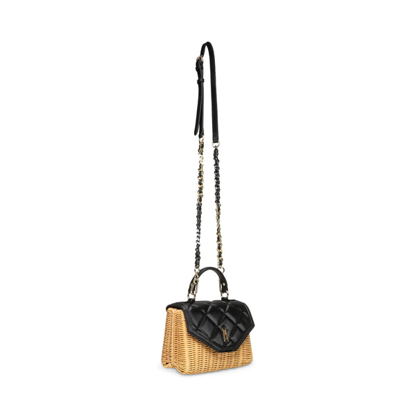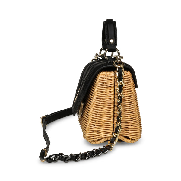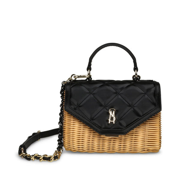 תיק יד לנשים בשחור משולב קש בגוון טבעי מבית סטיב מאדן