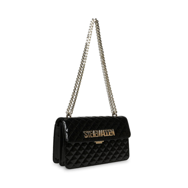 תיק צד לנשים בשחור עם לוגו ורצועת שרשרת זהובים מבית סטיב מאדן