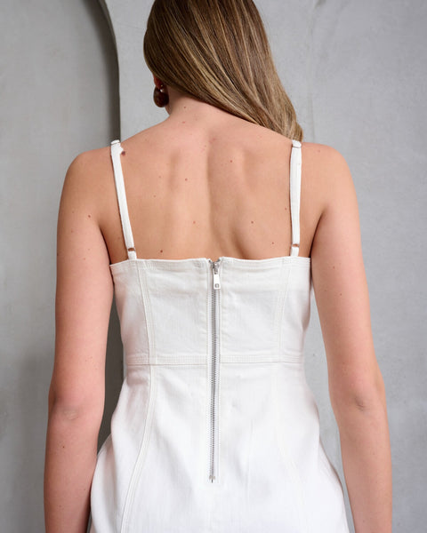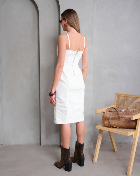 שמלת מידי לנשים בלבן עם שסע וכתפיות דקות מבית סטיב מאדן