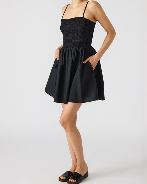 שמלת מיני בשחור עם כיווצים בחלק העליון וחצאית פפילום עם כיסים מבית סטיב מאדן