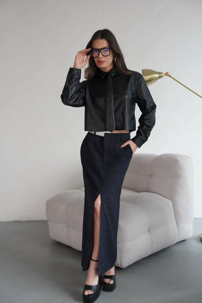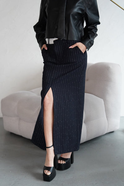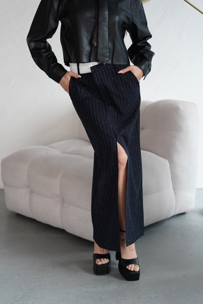 חצאית מקסי לנשים בכחול נאיבי בסגנון מחוייט עם שסע מבית סטיב מאדן