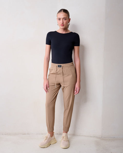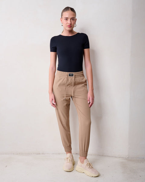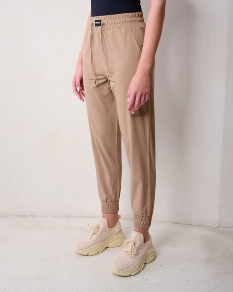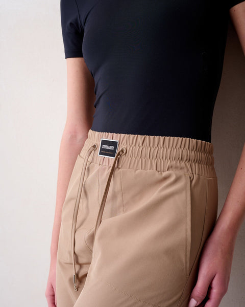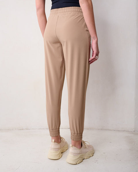 מכנסי ג׳וגר לנשים בקאמל עם לוגו רקום מבית סטיב מאדן