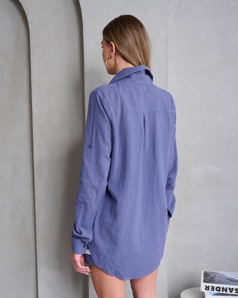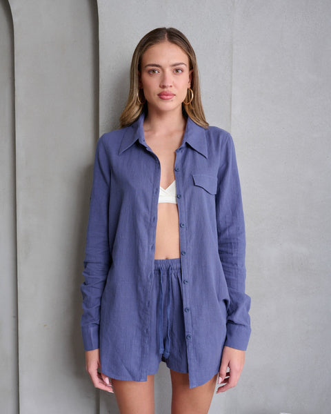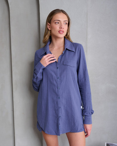 חולצה מכופתרת לנשים בגוון כחול מבית סטיב מאדן
