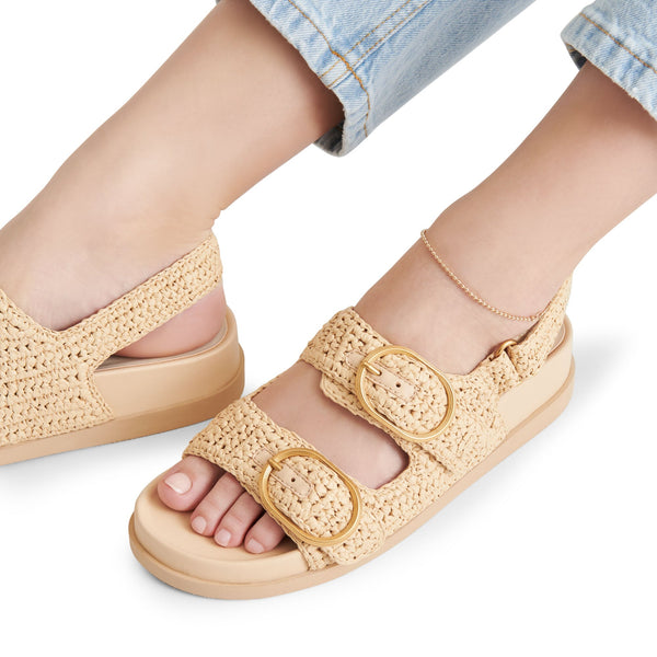 סנדלים שטוחים לנשים בגוון טבעי בסגנון סרוג עם אבזמים זהובים וסגירה אחורית מבית דולצ׳ה ויטה