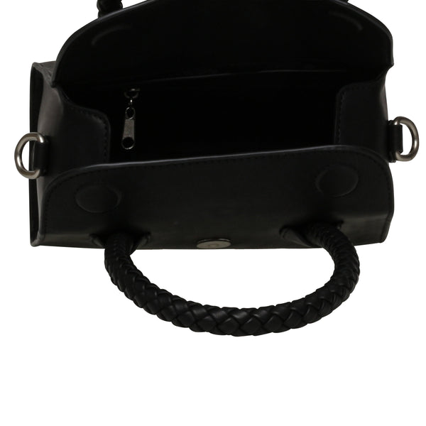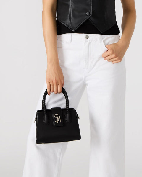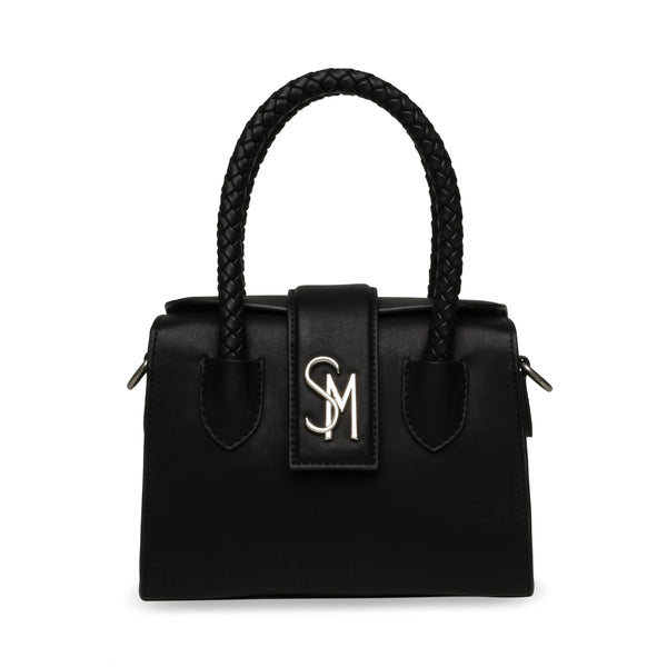 תיק צד לנשים בשחור עם אלמנטים ורצועת נשיאה כסופים מבית סטיב מאדן
