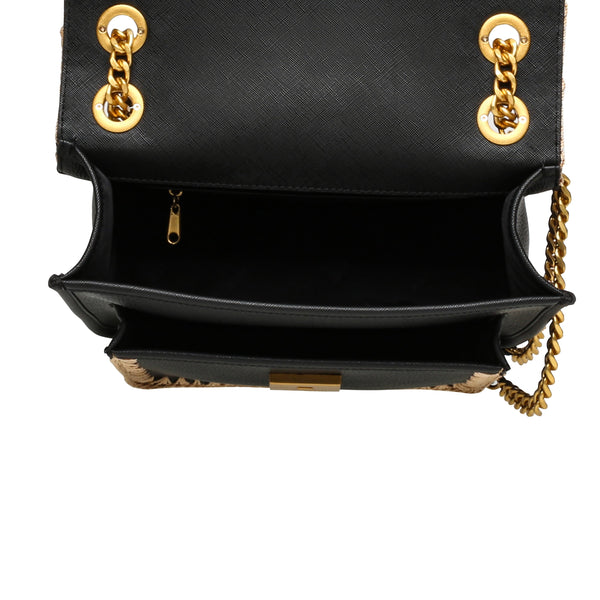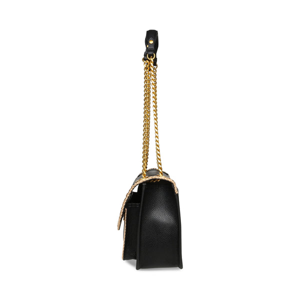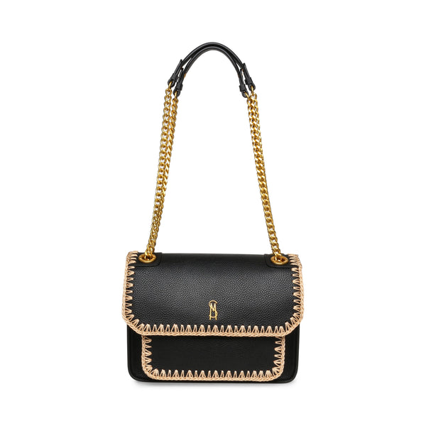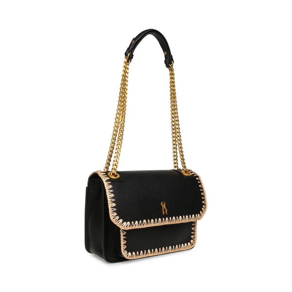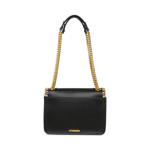 תיק צד לנשים בשחור משולב בתיפורי זהב עם רצועת שרשרת ולוגו מוזהבים מבית סטיב מאדן