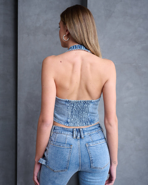 וסט ג׳ינס לנשים עם צווארון קולר ורוכסן בחזית מבית סטיב מאדן