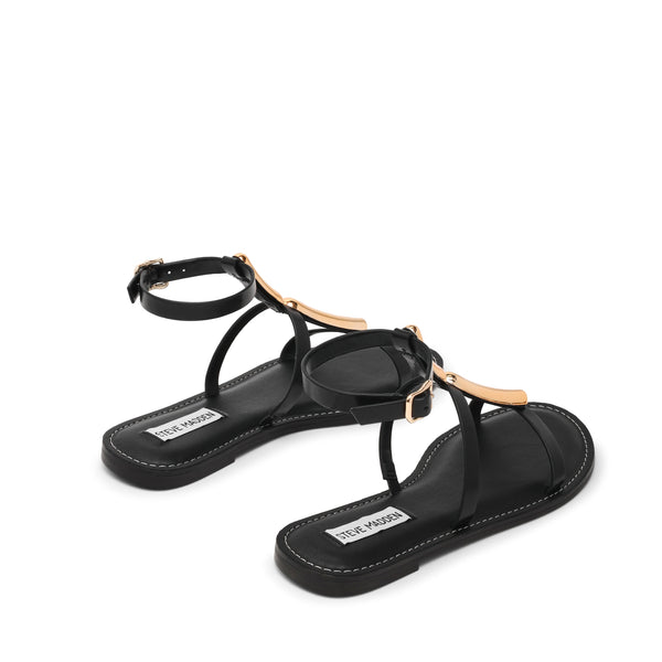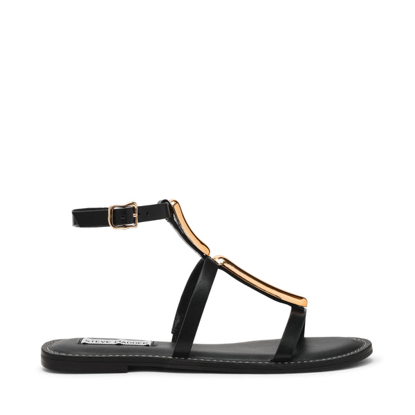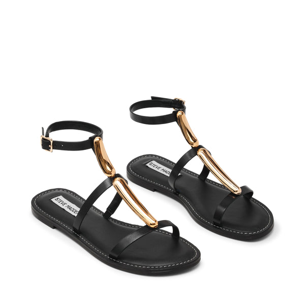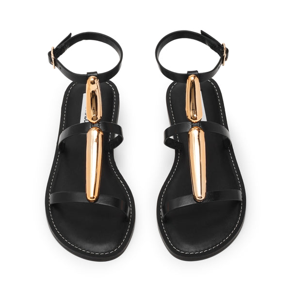 סנדלים שטוחים לנשים עם רצועות בשחור ואלמנטים מוזהבים מבית סטיב מאדן