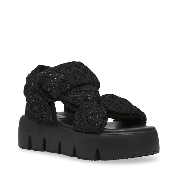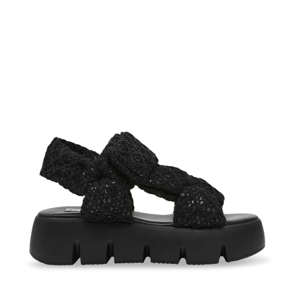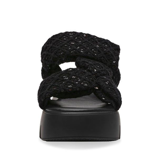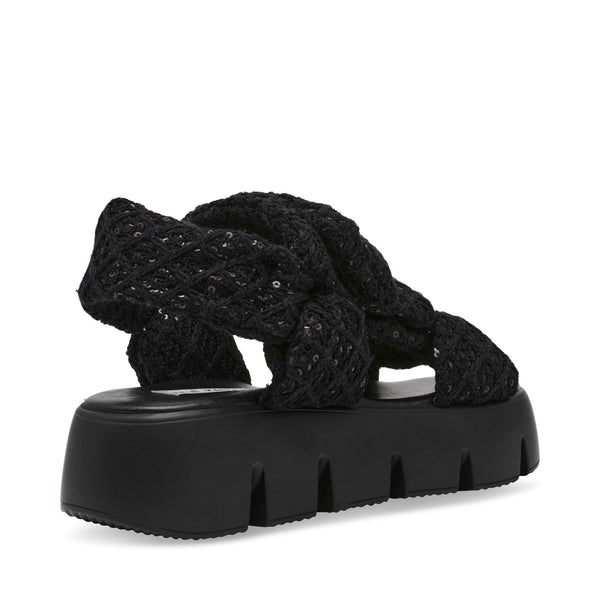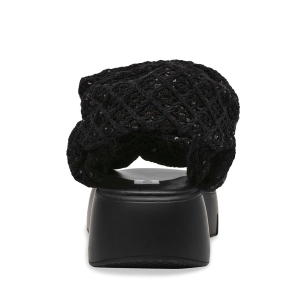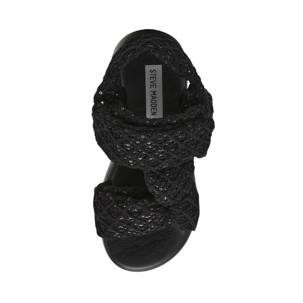 סנדלים לנשים בשחור עם רצועות פלאפיות בסגנון סרוג וגליטרים מבית סטיב מאדן