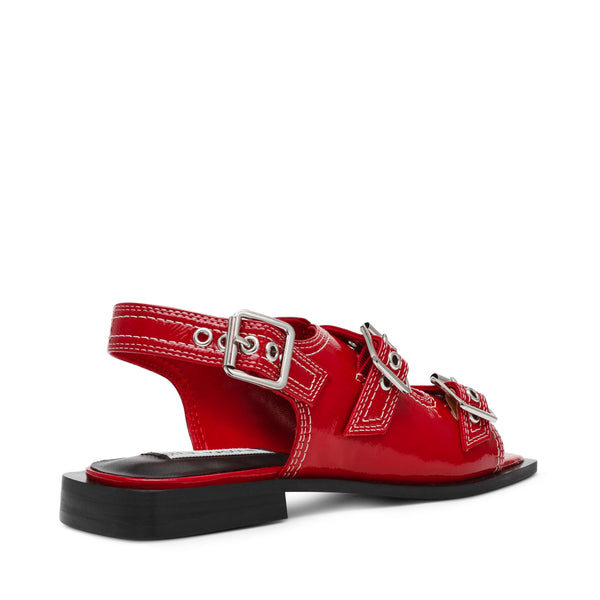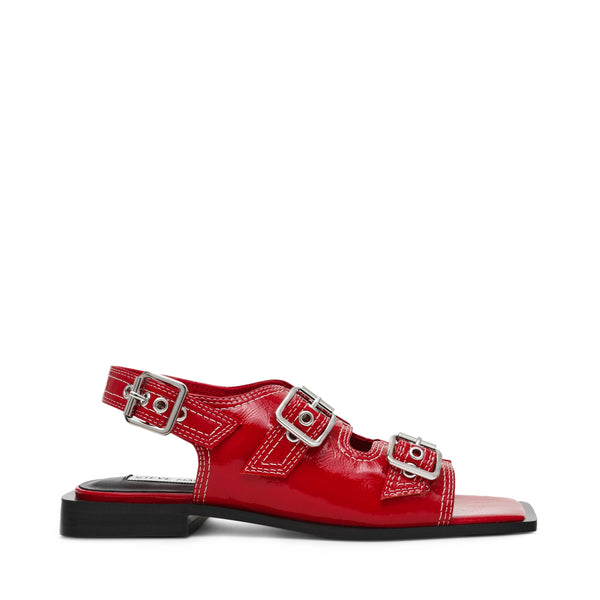 סנדלים לנשים באדום בגימור מבריק עם אבזמים כסופים מבית סטיב מאדן