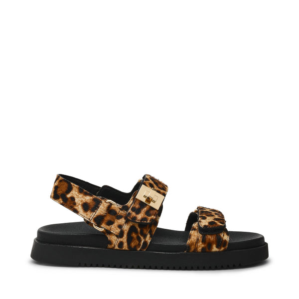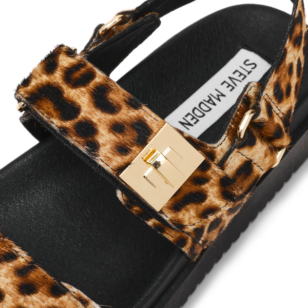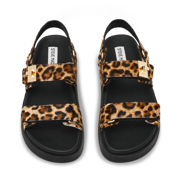 סנדלים לנשים עם רצועות במנומר ואלמנטים מוזהבים מבית סטיב מאדן