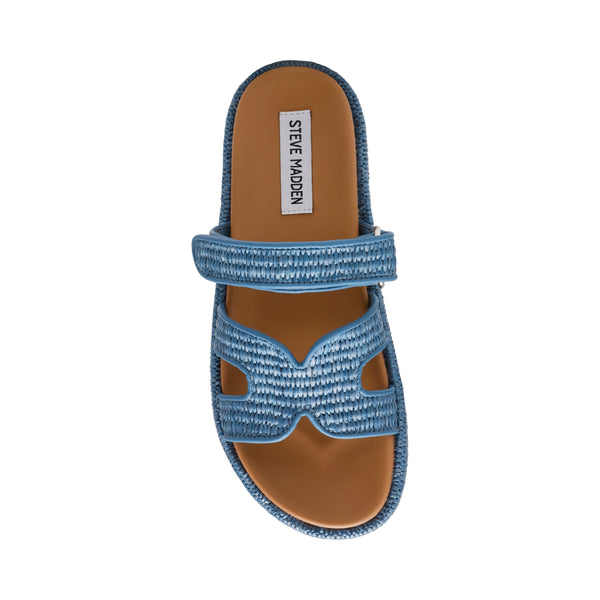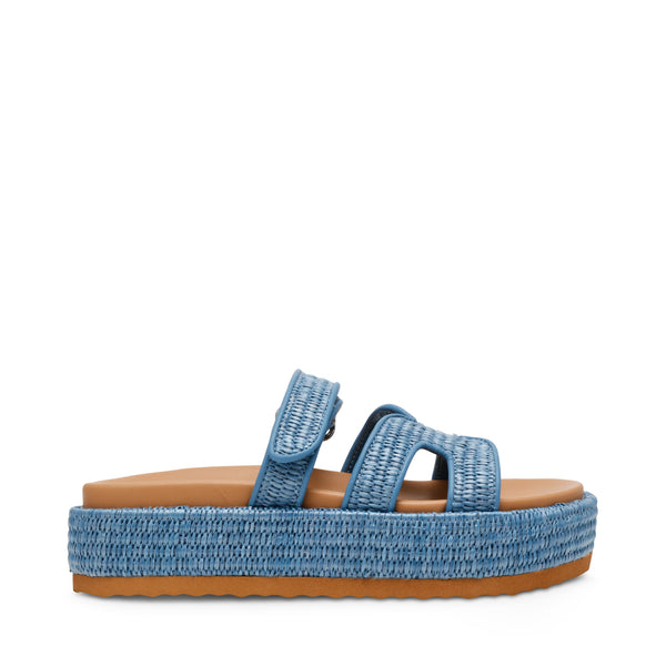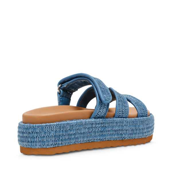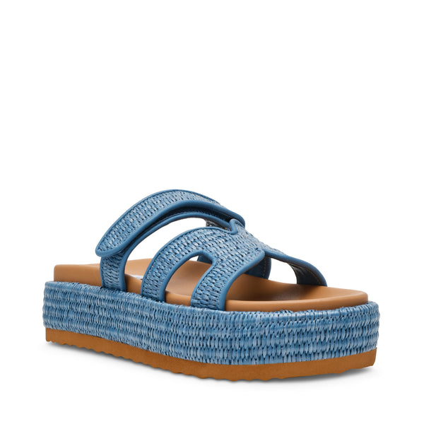 כפכפי פלטפורמה לנשים בגוון כחול ג׳ינס בסגנון קש מבית סטיב מאדן