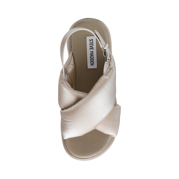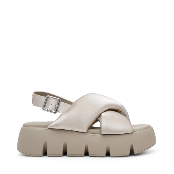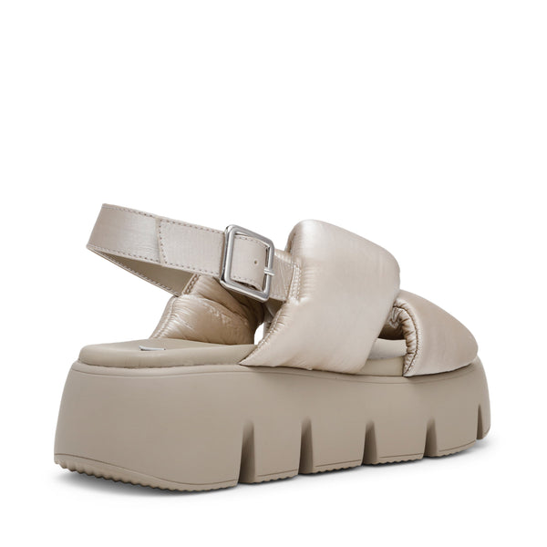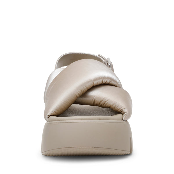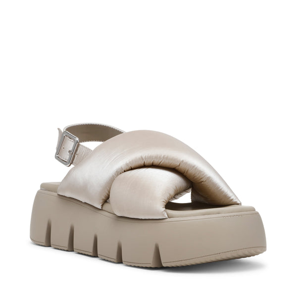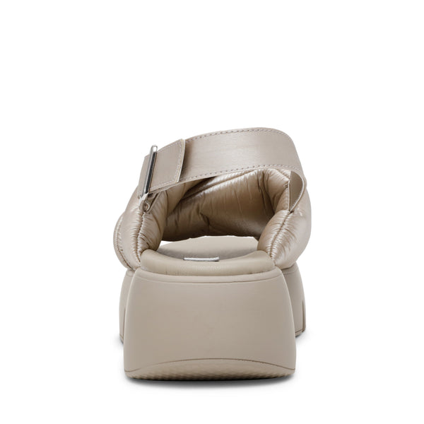 סנדלים לנשים עם בגוון בז׳ אפרפר עם סוליה צ׳אנקית ורצועות פלאלפיות מבית סטיב מאדן