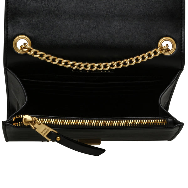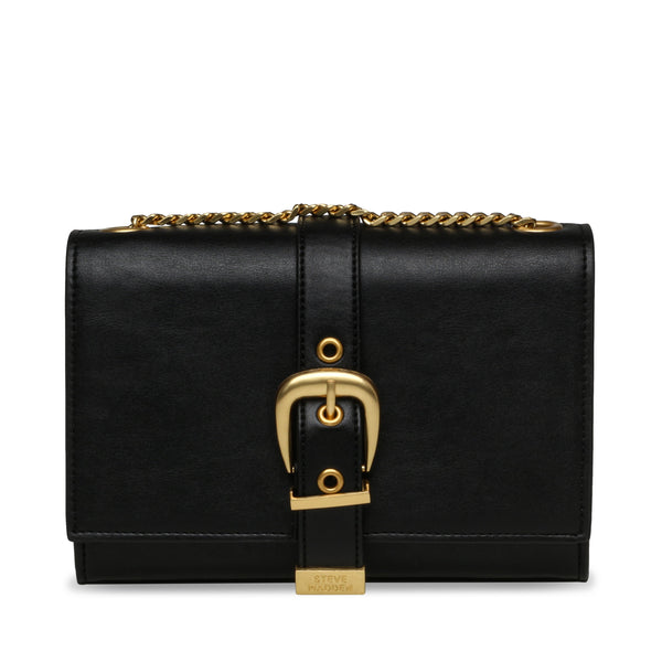 תיק צד לנשים בשחור עם אבזם חגורה ורצועת שרשרת זהובים מבית סטיב מאדן