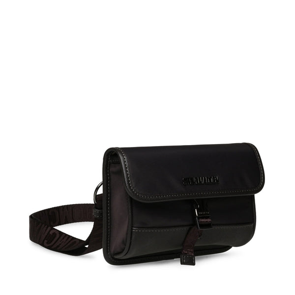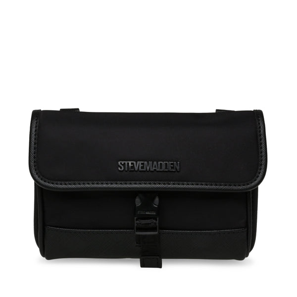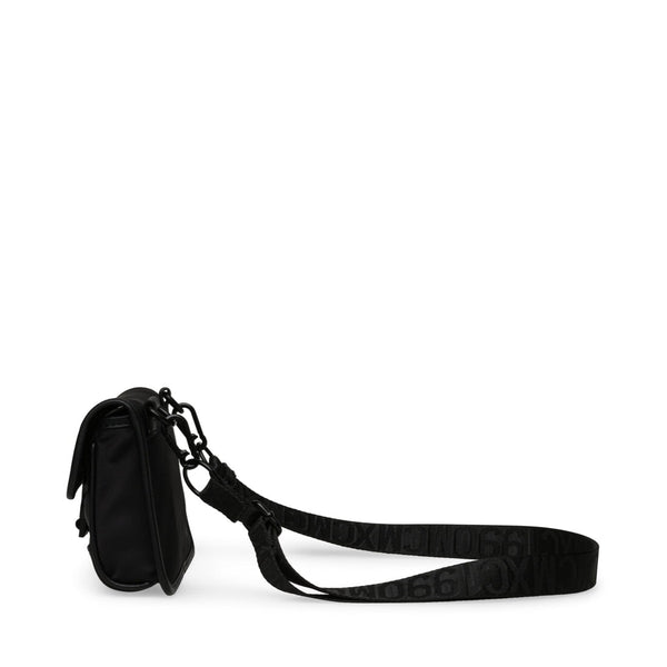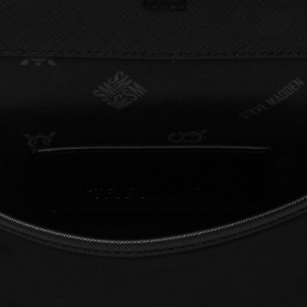 תיק יד לנשים בשחור עם לוגו מושחר ורצועה ממותגת מבית סטיב מאדן