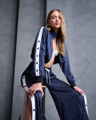 מכנסיים קצרים לנשים בנייבי משולב לבן וכפתורים בצדדים מבית סטיב מאדן