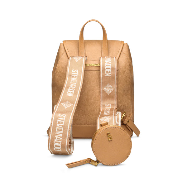 תיק גב לנשים בקאמל עם לוגו מוזהב ורצועות ממותגות מבית סטיב מאדן