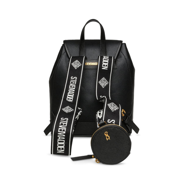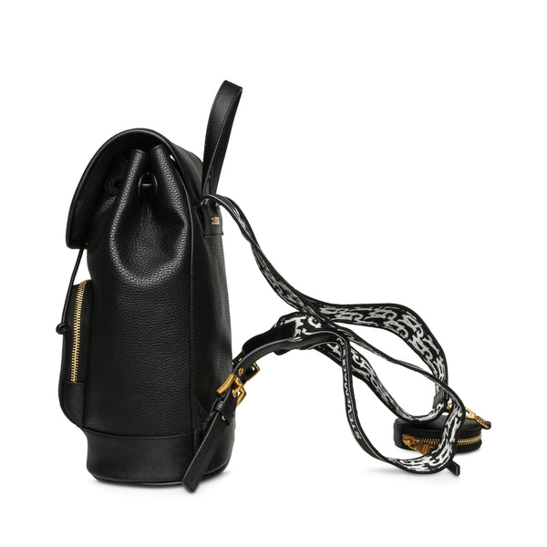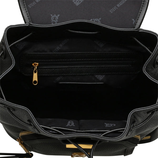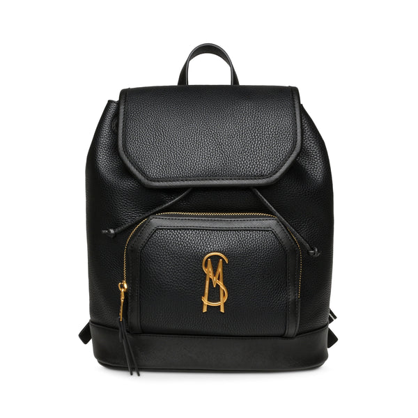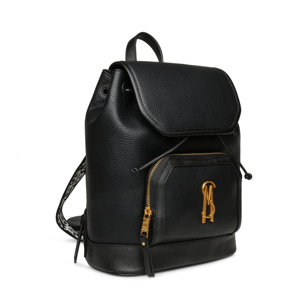 תיק גב לנשים בשחור עם לוגו מוזהב ורצועות ממותגות מבית סטיב מאדן