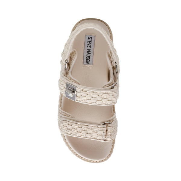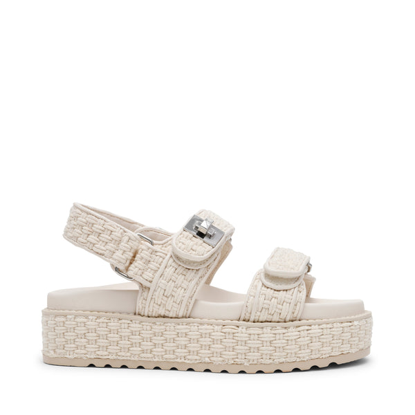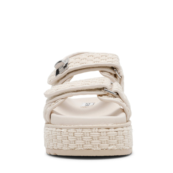 סנדלים לנשים בגוון אבן בסגנון קש עם אבזם כסוף מבית סטיב מאדן
