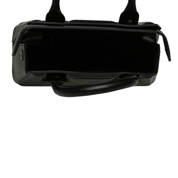 תיק יד לנשים בשחור בסגנון א סימטרי עם לוגו מושחר לתיק רצועת נשיאה הניתנת להסרה מבית סטיב מאדן