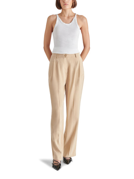 מכנסיים מחוייטים לנשים בגוון חאקי בז׳ בגזרה ישרה מבית סטיב מאדן