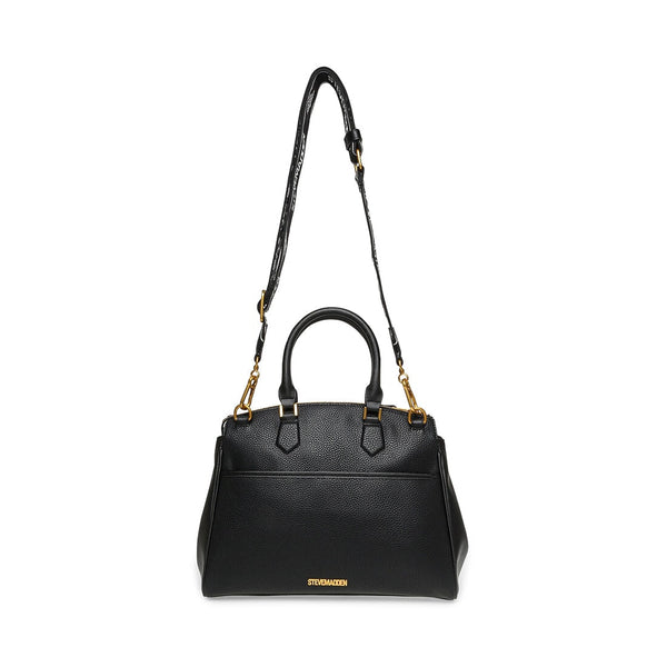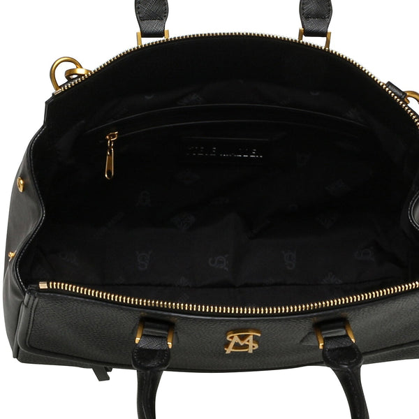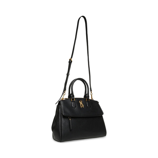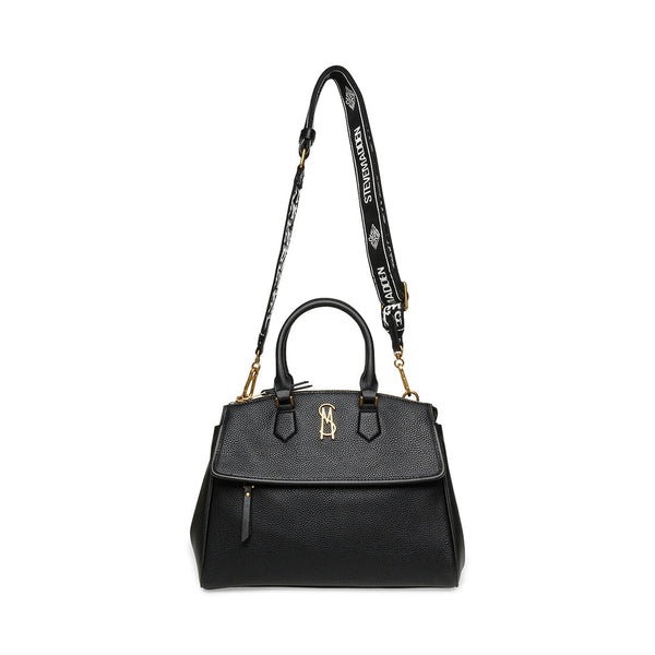 תיק יד גדול לנשים בשחור עם לוגו מוזהב ורצועת נשיאה לצד הגוף מבית סטיב מאדן