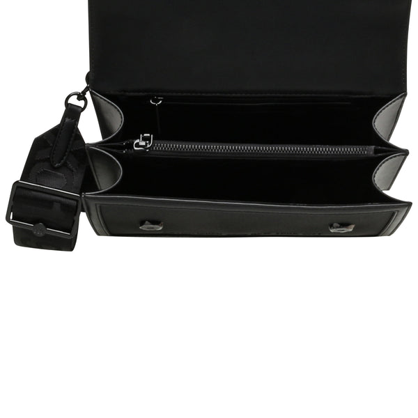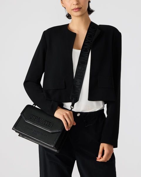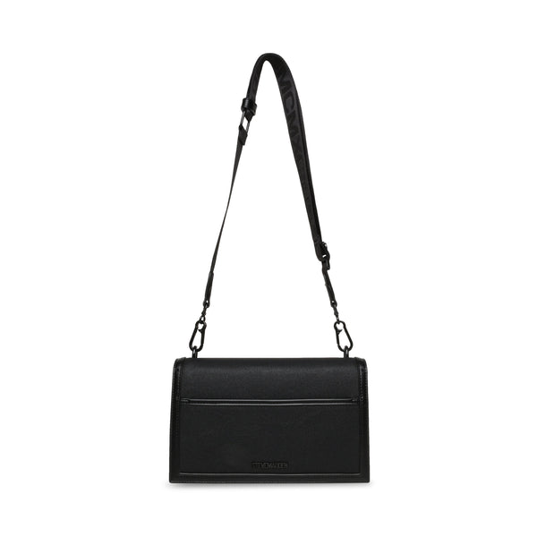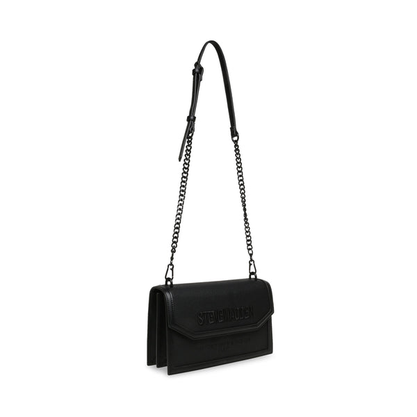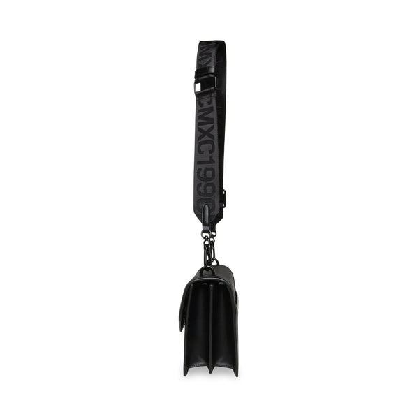תיק צד לנשים בשחור ורקמת לוגו בשחור, התיק מגיע עם שתי רצועות נשיאה הניתנות להסרה מבית סטיב מאדן