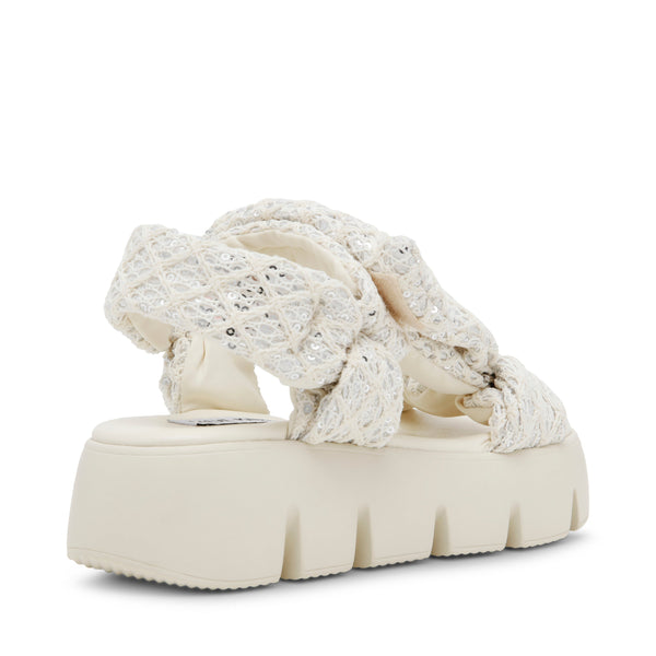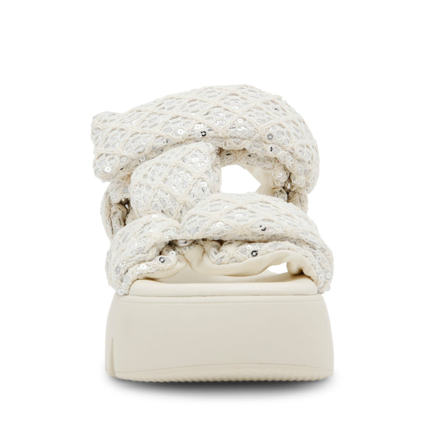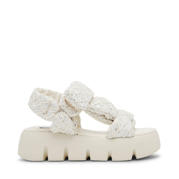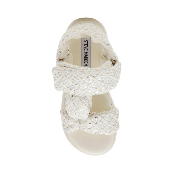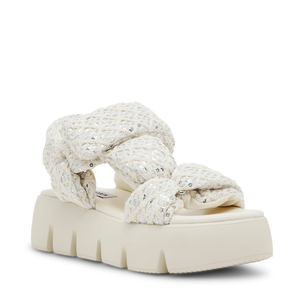 סנדלים לנשים בגוון אבן עם רצועות פלאפיות בסגנון סרוג וגליטרים מבית סטיב מאדן