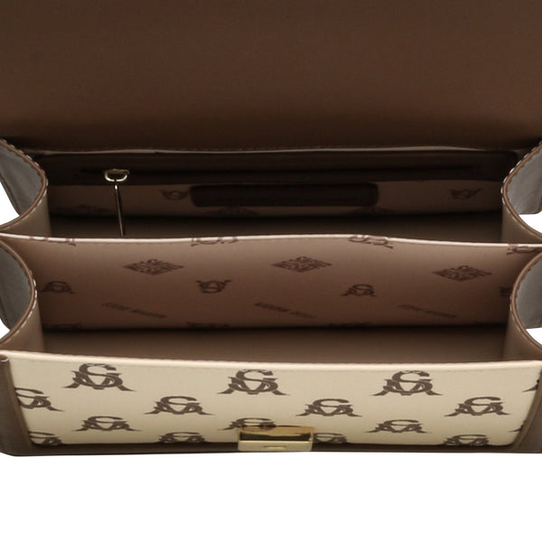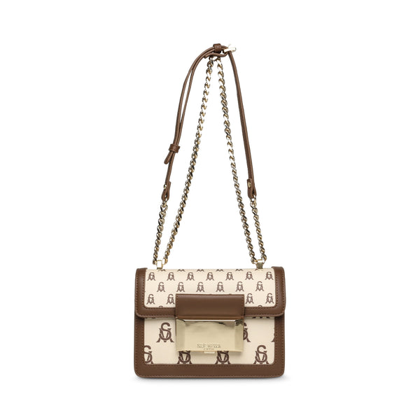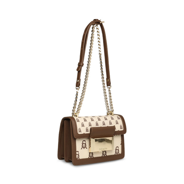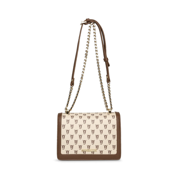 תיק צד לנשים בגוון אבן משולב חום עם הדפס לוגו ורצועת שרשרת מבית סטיב מאדן