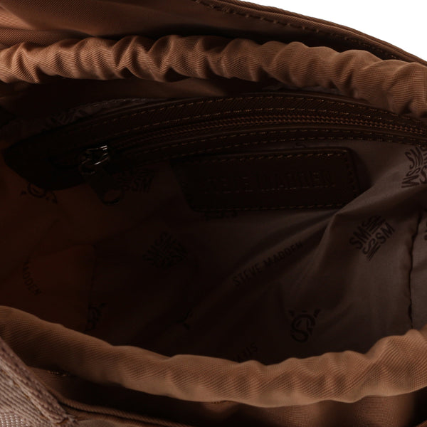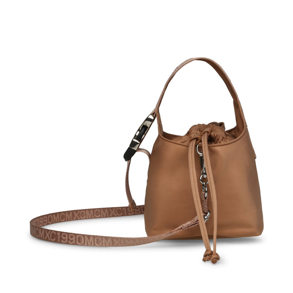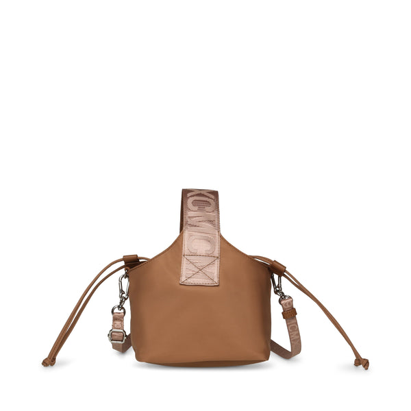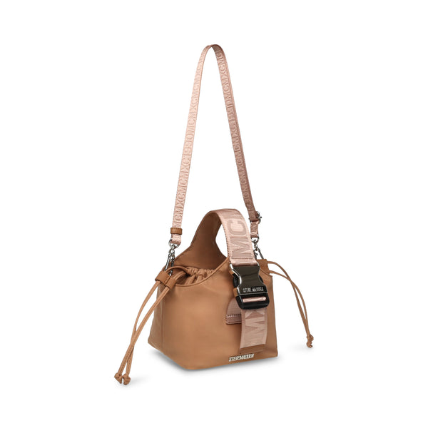 תיק צד לנשים בגוון קאמל בסגנון באקט עם רצועה ממותגת מבית סטיב מאדן