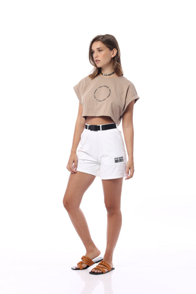 מכנסיים קצרים עם חגורה וכיסים בלבן מבית סטיב מאדן
