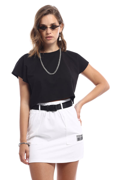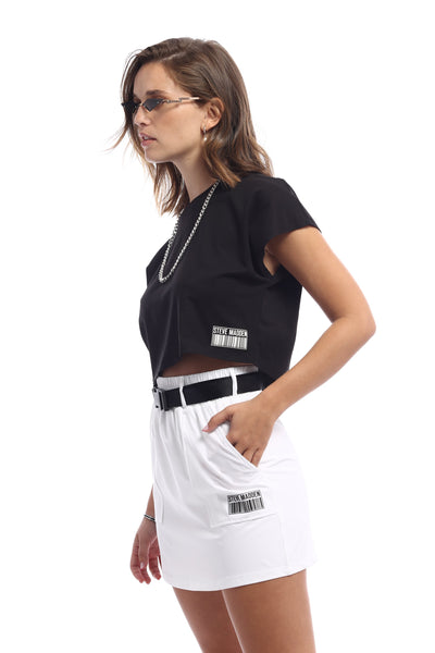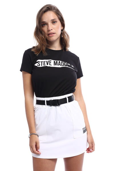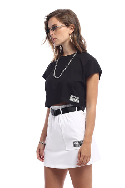 חצאית מיני ספורטיבית בצבע לבן עם חגורה וכיסים מבית סטיב מאדן