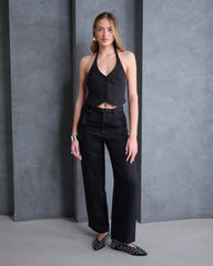 ווסט לנשים בשחור עם גב פתוח ורצועת התאמה אחורית מבית סטיב מאדן