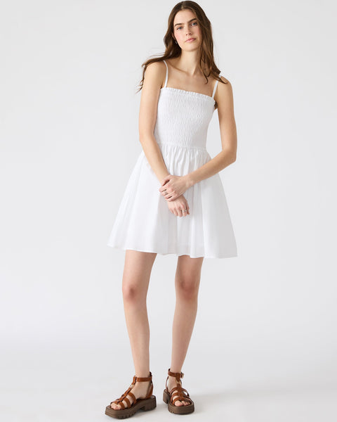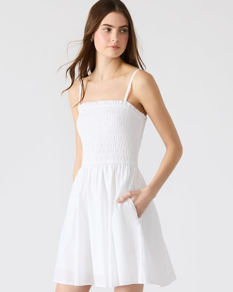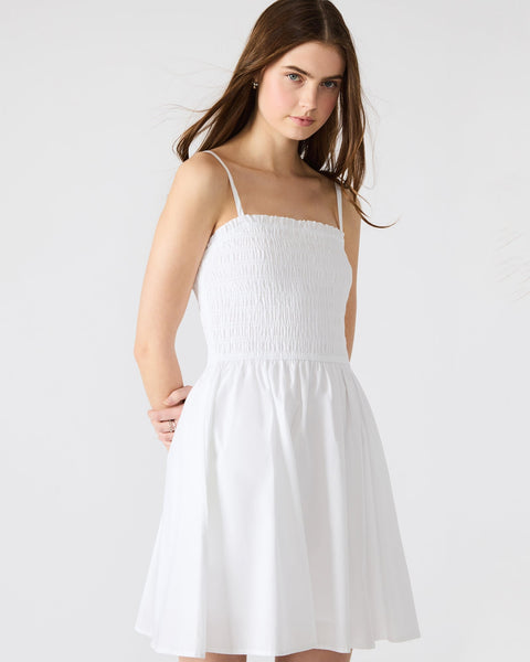 שמלת מיני בלבן עם כיווצים בחלק העליון וחצאית פפילום עם כיסים מבית סטיב מאדן