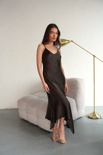 שמלת מקסי א -סימטרית לנשים בשחור ללא שרוולים מבית סטיב מאדן