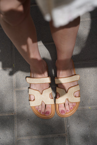 סנדלי עקב לנשים בגוון טבעי מבית סטיב מאדן