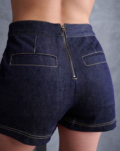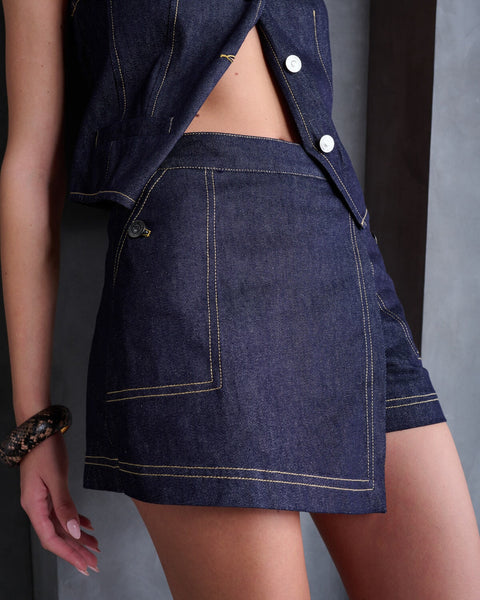 מכנסי חצאית לנשים בגוון ג׳ינס כהה בגזרה א-סימטרית מבית סטיב מאדן