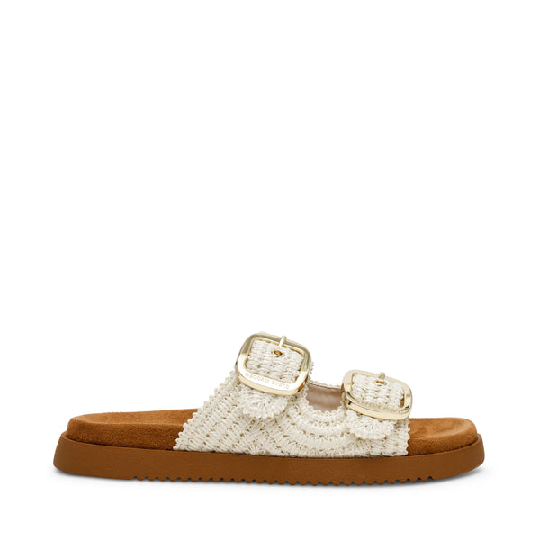 כפכפים שטוחים לנשים בלבן עם רצועות בסגנון סרוג מבית סטיב מאדן